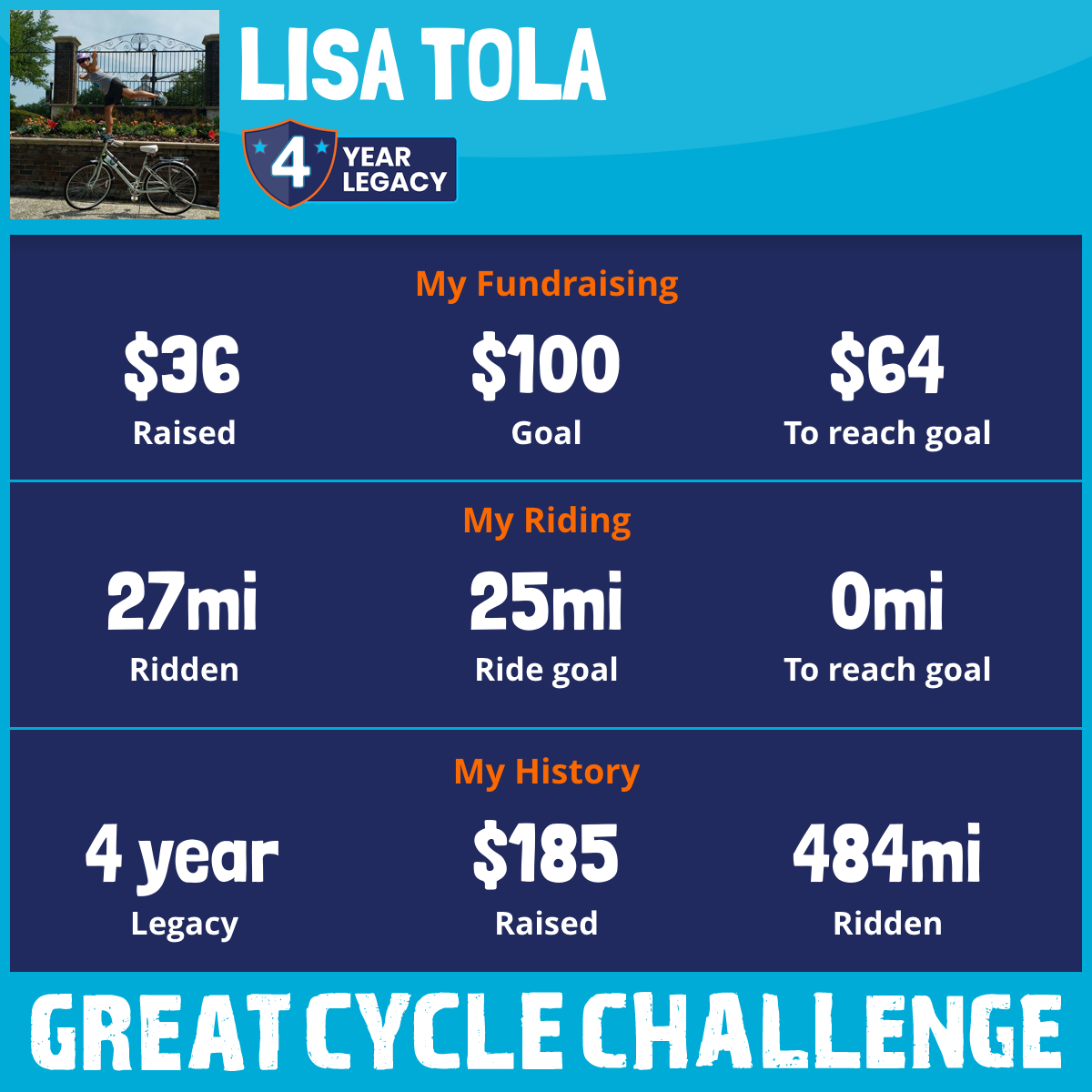 296 mi Ridden$36 Raised2018