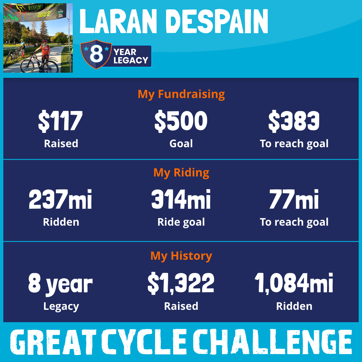 So I am raising funds through my challenge to help these kids and support Children's Cancer Research Fund to allow them to continue their work to develop lifesaving treatments and find a cure for childhood cancer.