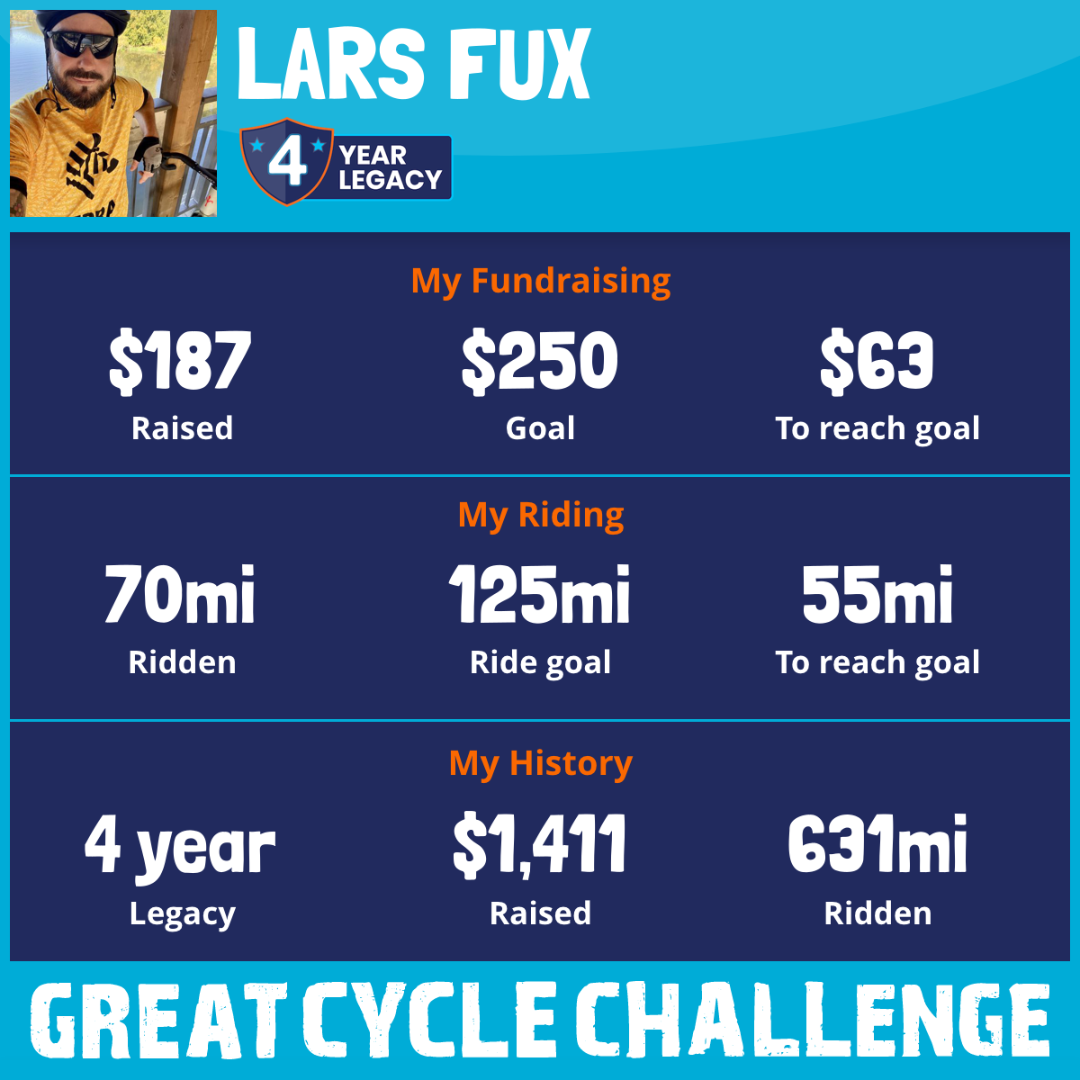 70 mi Ridden$187 Raised2025