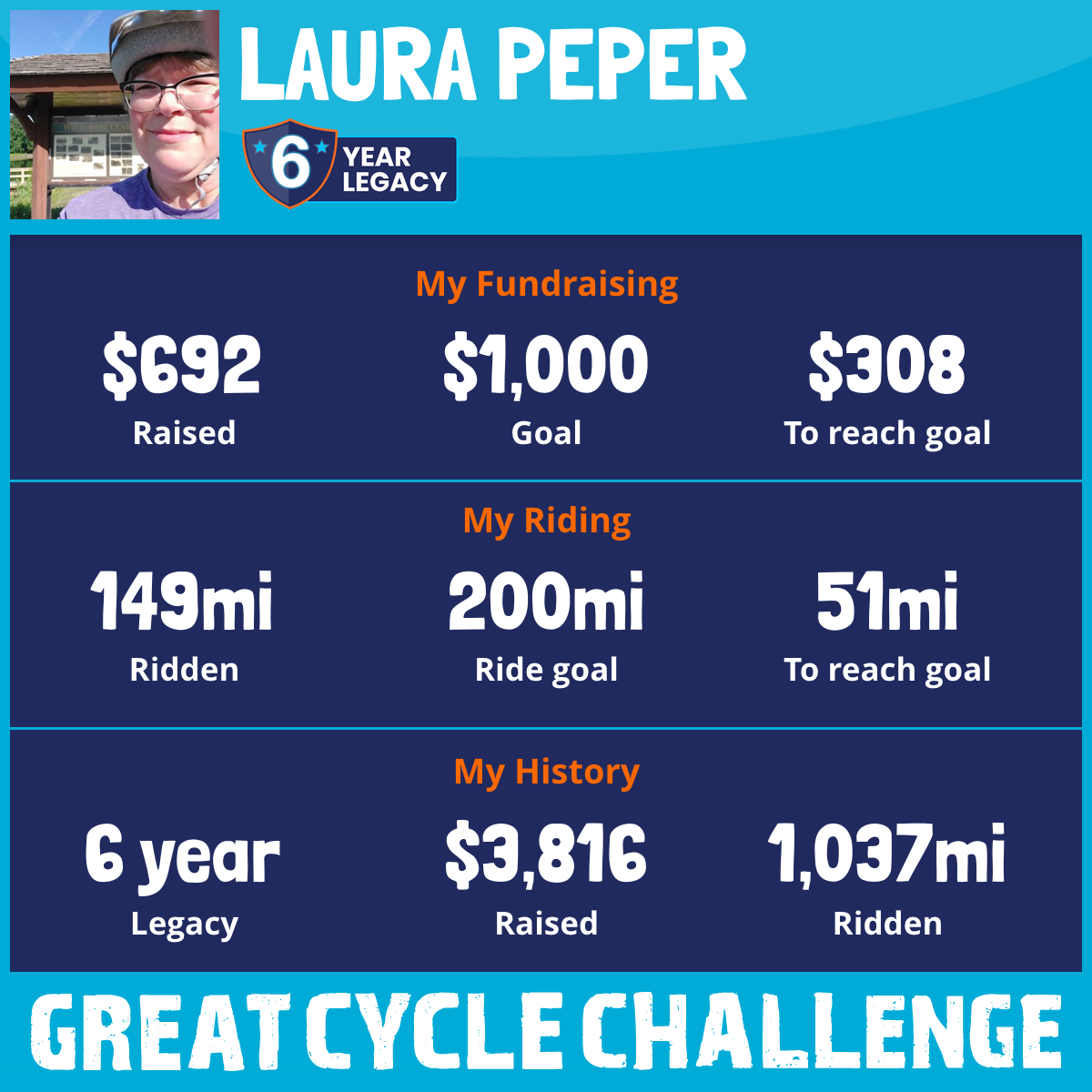 I am riding 200 mi for Barb. Please sponsor me and support my challenge to fight kids' cancer and save little lives.