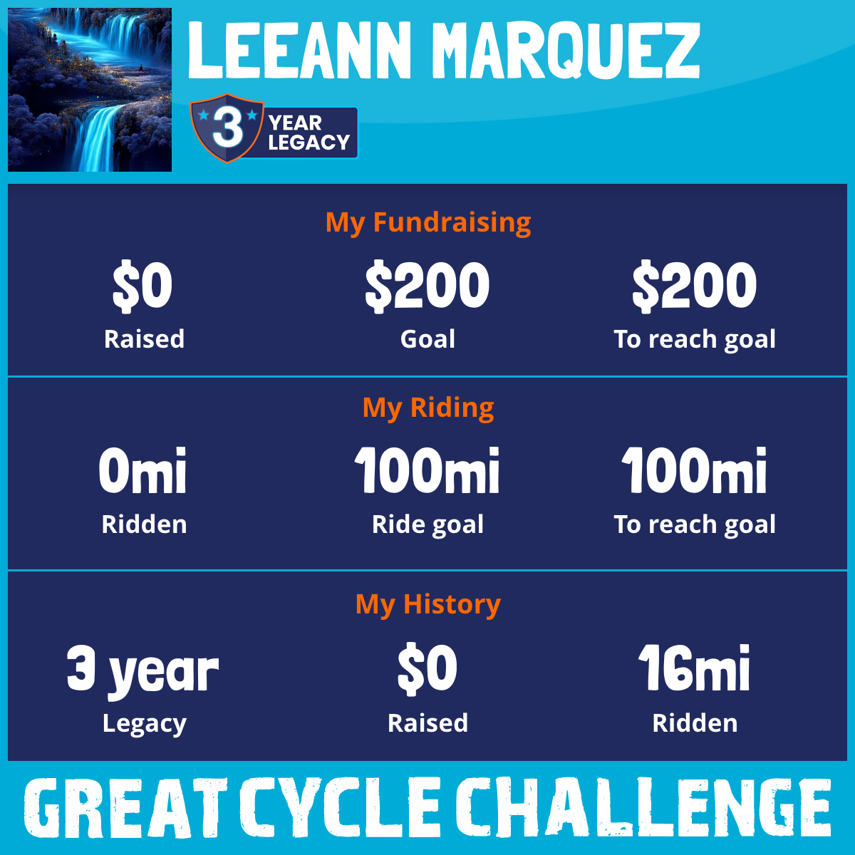 I am riding 100 mi for my loved one, Gramma Marie. Please sponsor me and support my challenge to fight kids' cancer and save little lives.