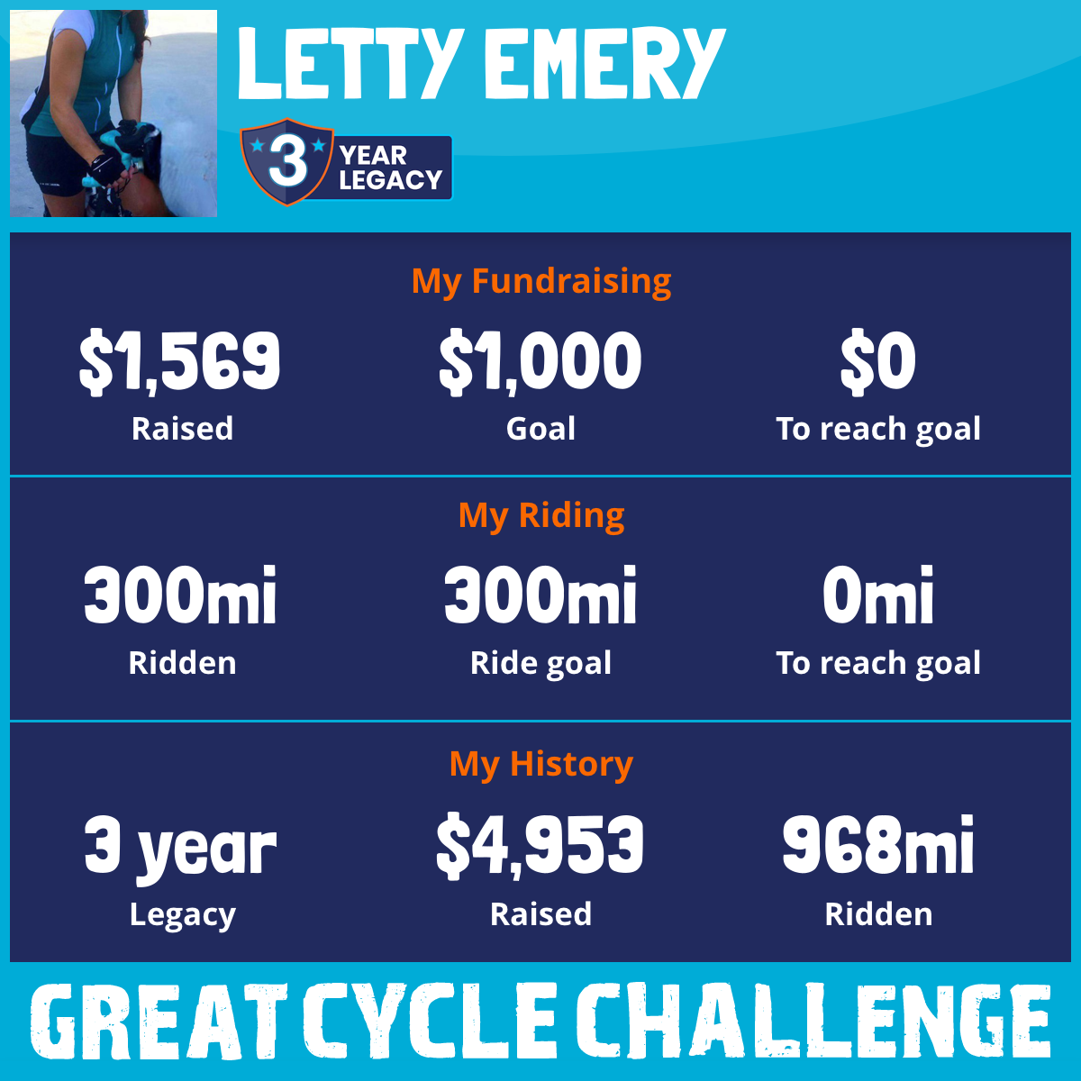 300 mi Ridden$1,569 Raised2025