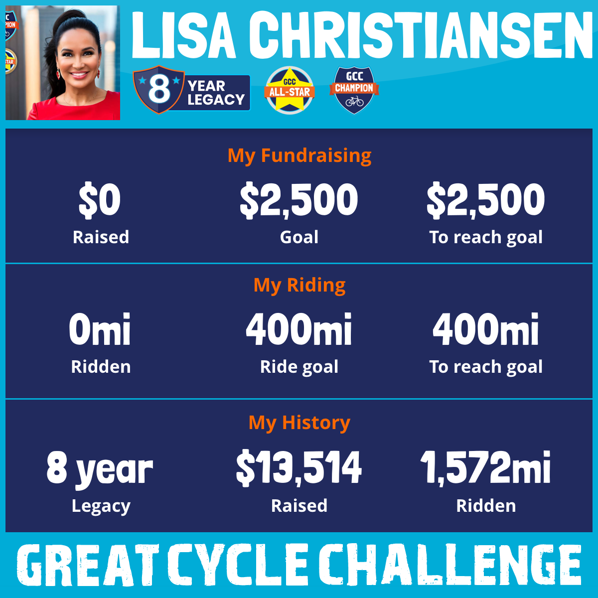 This September, I am RIDING in the Great Cycle Challenge to fight kids' cancer! I learned something new, only 4% of federal government cancer research funding goes to study pediatric cancer, we need to do all we can. I need your help to give these families hope and help find a cure.