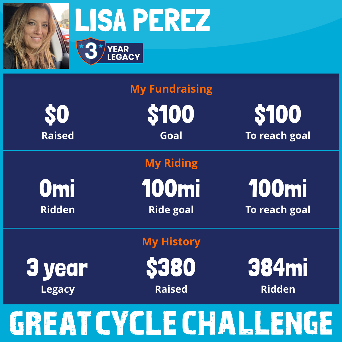 I am riding 100 mi in memory of Wilson Perez, my dad. Please sponsor me and support my challenge to fight kids' cancer and save little lives.