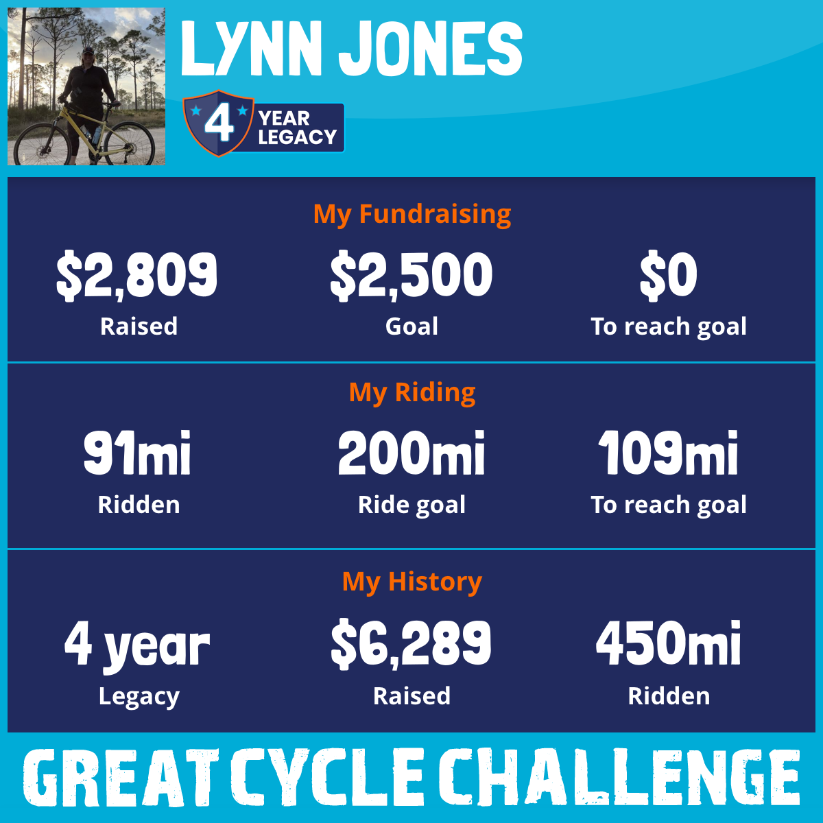 121 mi Ridden$1,296 Raised2023
