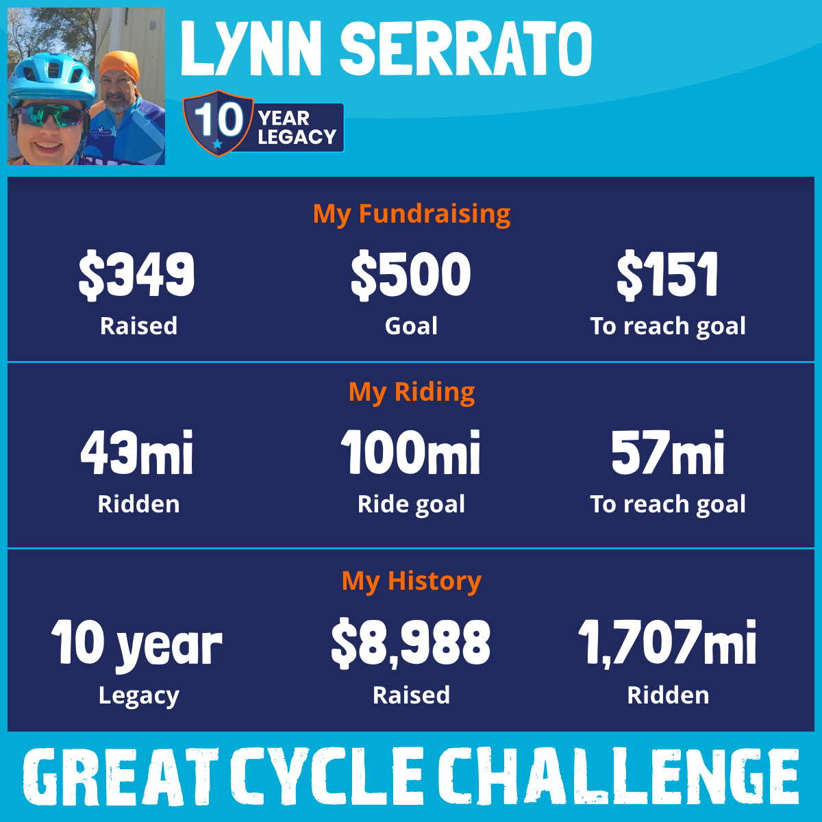 This September, I am taking part in the Great Cycle Challenge to fight kids' cancer! My 9th year!