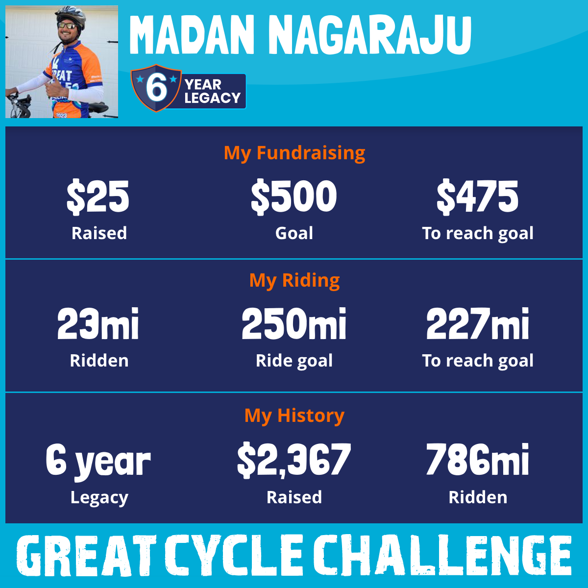 I am riding 250 mi for Children's Cancer Research. Please sponsor me and support my challenge to fight kids' cancer and save little lives.