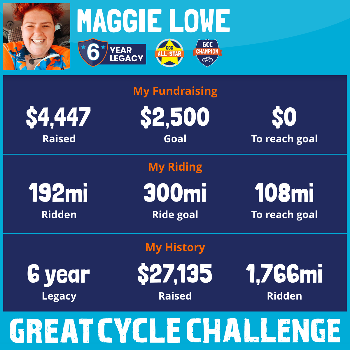 192 mi Ridden$4,447 Raised2025