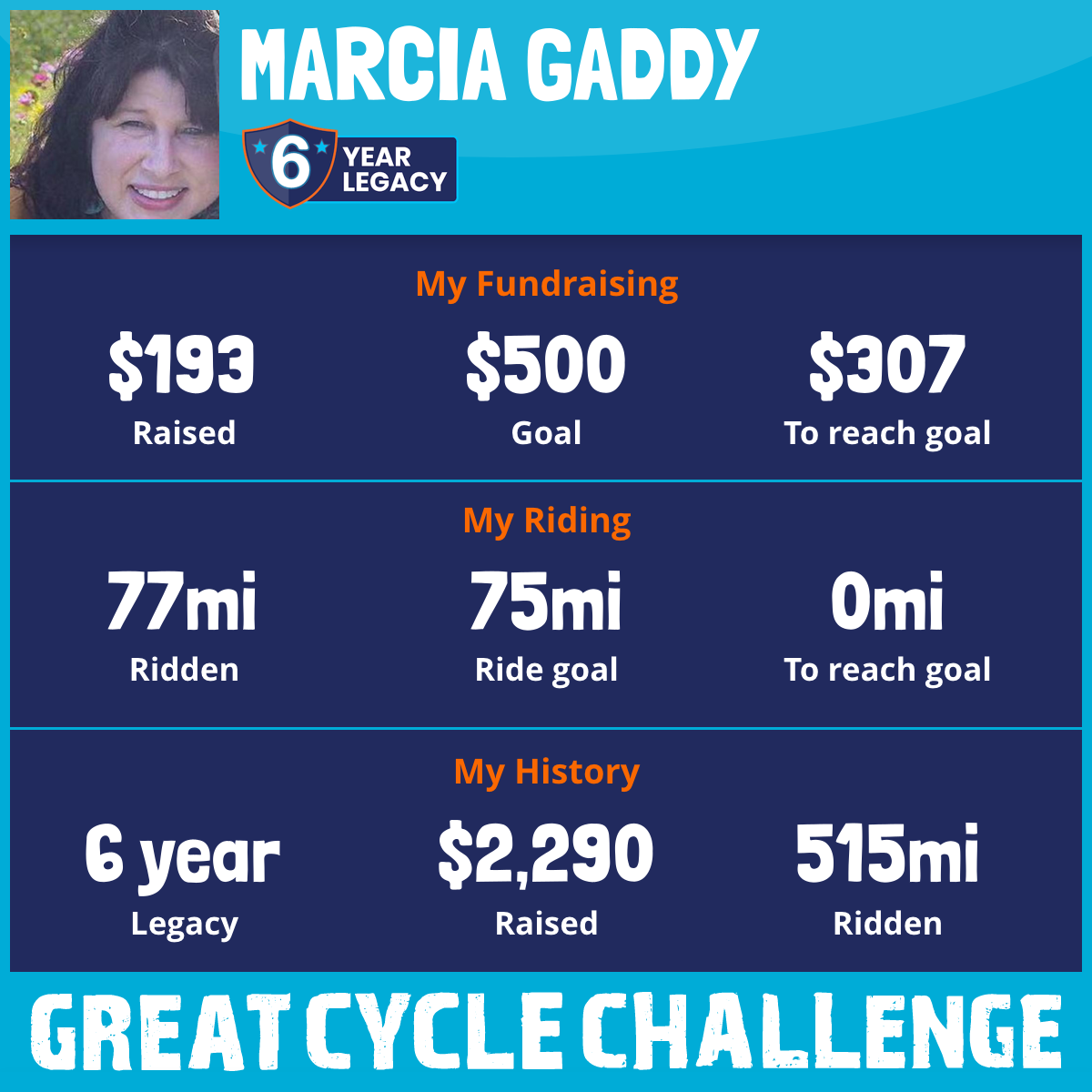 83 mi Ridden$264 Raised2023