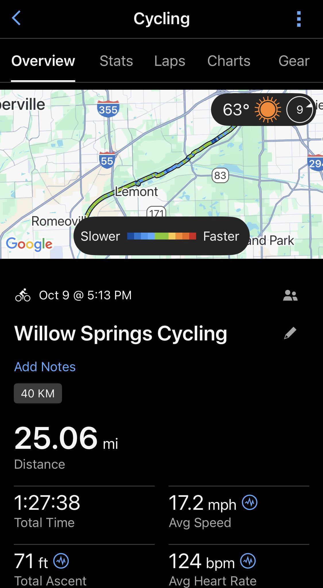 13.6 mi ride - Orland Park Cycling - Monday, September 29, 2025