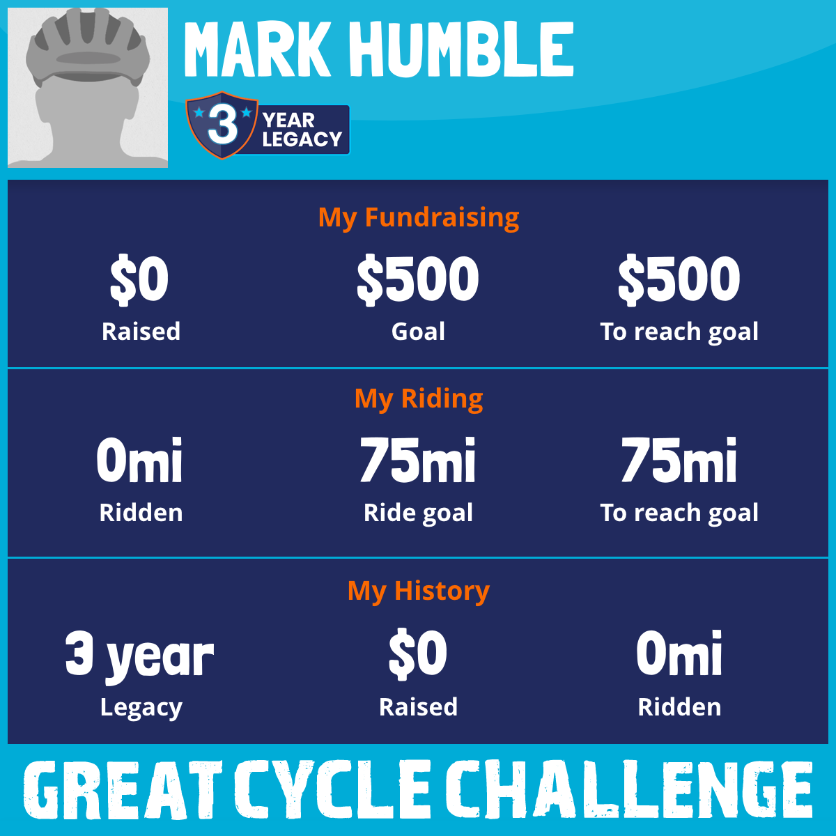 I am riding 75 mi in memory of Bob Humble. Please sponsor me and support my challenge to fight kids' cancer and save little lives.