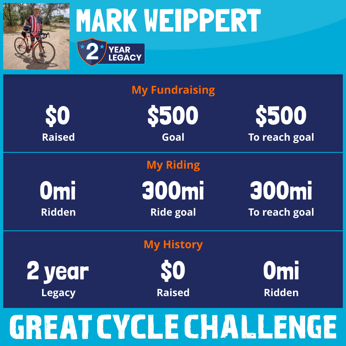 I am riding 300 mi in memory of Jerome Weippert. Please sponsor me and support my challenge to fight kids' cancer and save little lives.