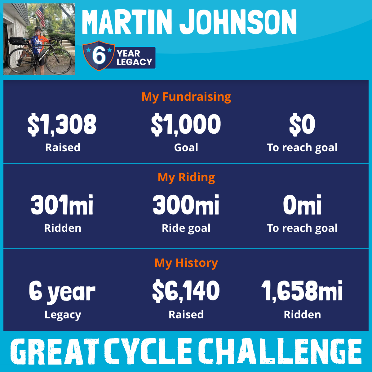301 mi Ridden$1,308 Raised2025