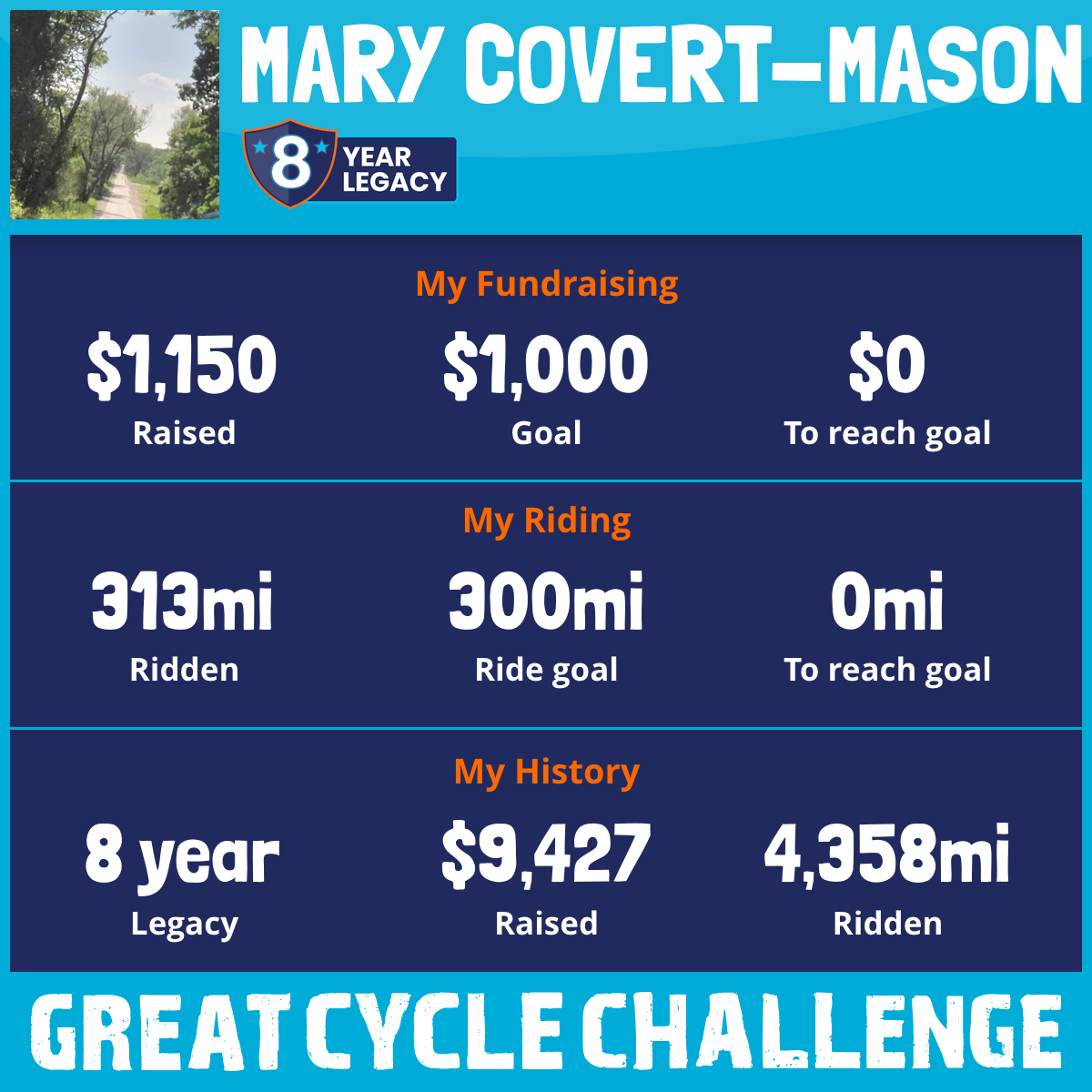 This is my 8th year riding to support the fight against kids caner. This year I am riding 300 mi Please sponsor me to support the children!