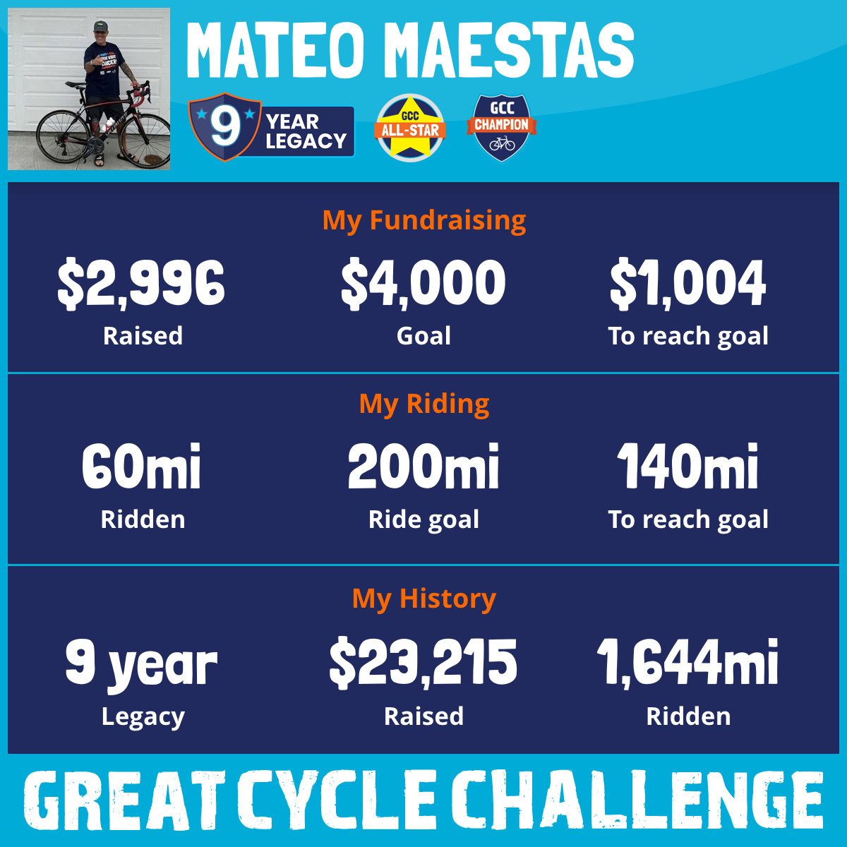 Hello everyone. I am riding for my 8TH YEAR to help kids that are fighting cancer at a time when they should be playing. I work as a Registered Nurse. I have the honor of helping people at their most desperate times. I implore you to help in the fight against children cancer. This is an amazing organization that really helps. For the past 7 years Wenatchee businesses, friends, family, and people in the Wenatchee community, have given selflessly and joined this fight. Please help; no donation is too small.
