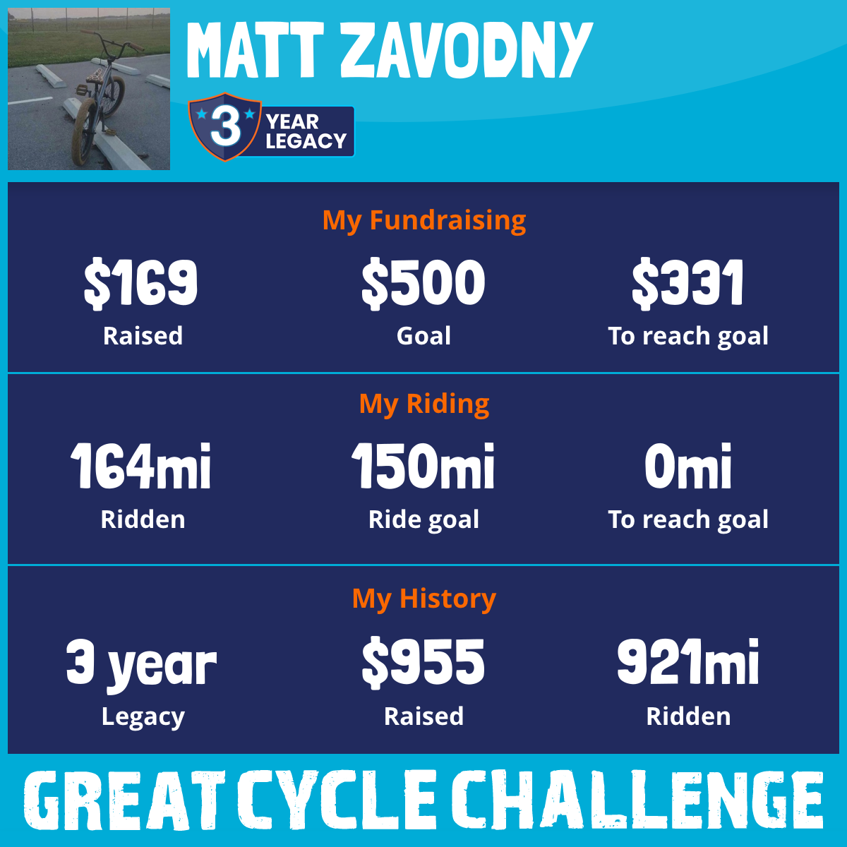 I am riding 150 mi to fight kids' cancer and save little lives. Please sponsor me to support my challenge!