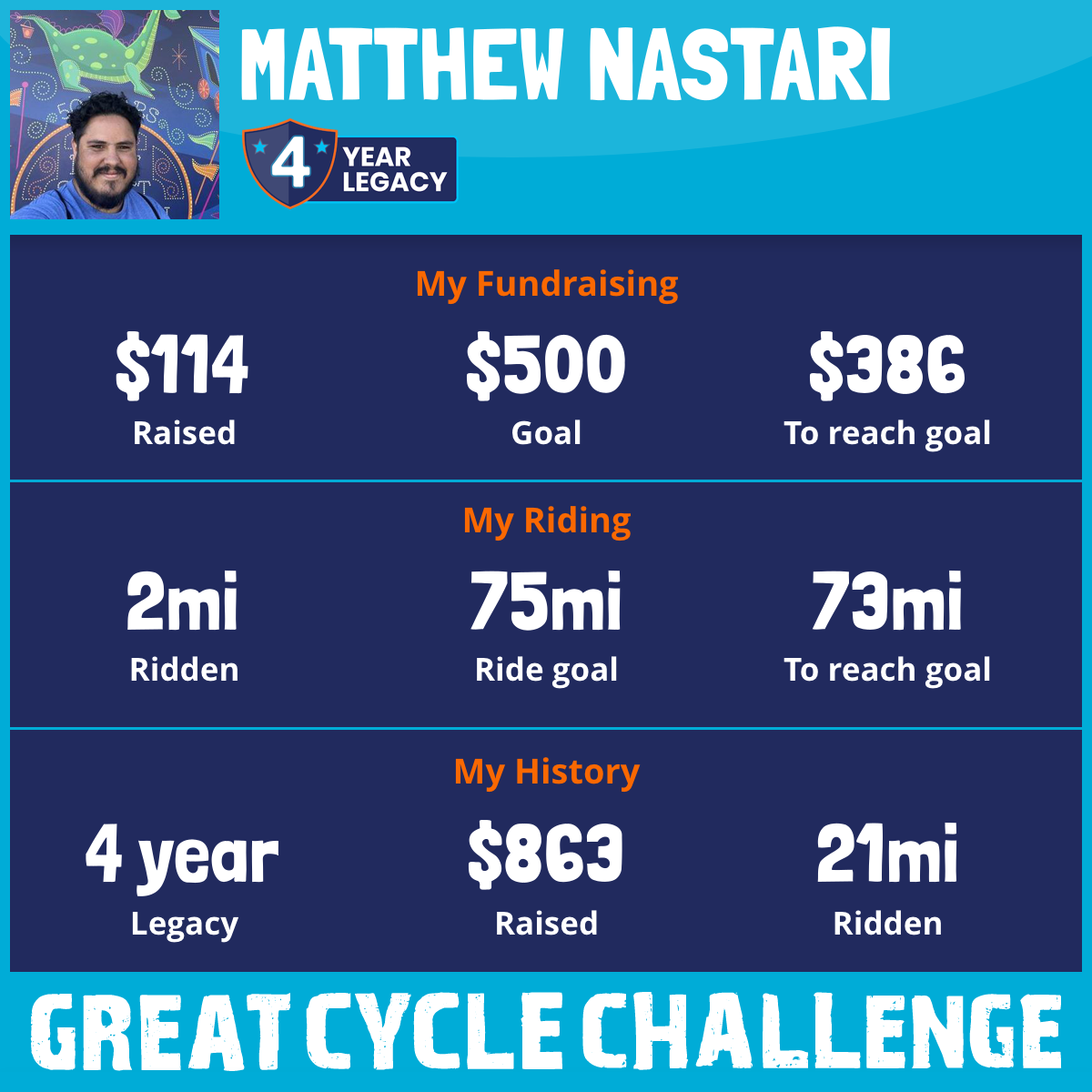 3 mi Ridden$401 Raised2022