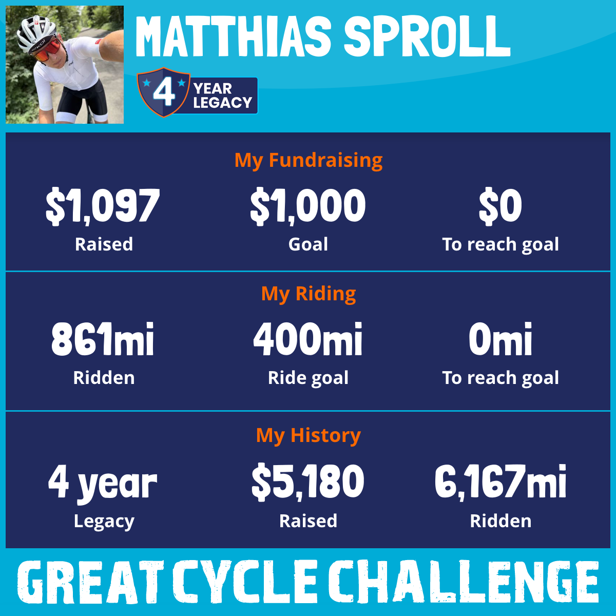 861 mi Ridden$1,097 Raised2025