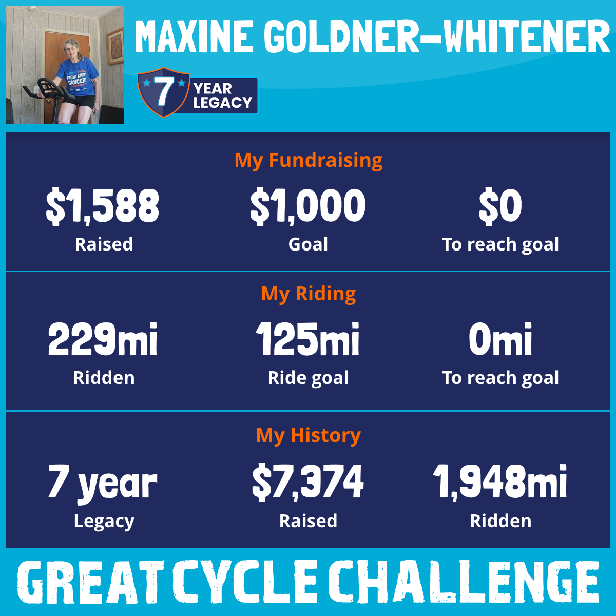 I am riding 125 mi for Shirley. Please sponsor me and support my challenge to fight kids' cancer and save little lives.