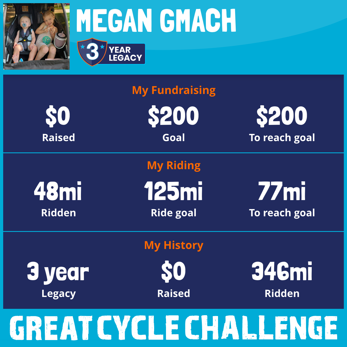 I am riding 125 mi to fight kids' cancer and save little lives. Please sponsor me to support my challenge!