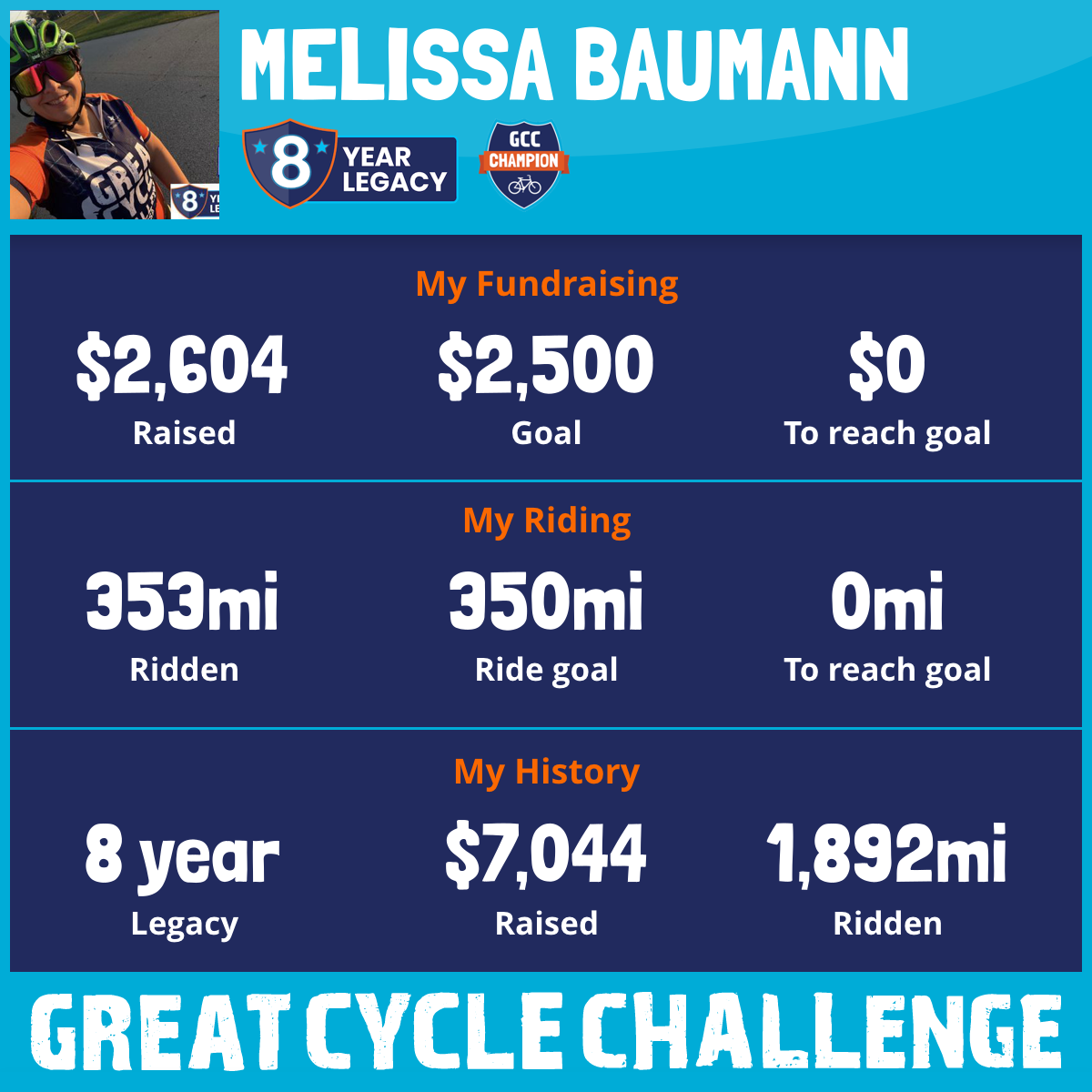 327 mi Ridden$1,176 Raised2023
