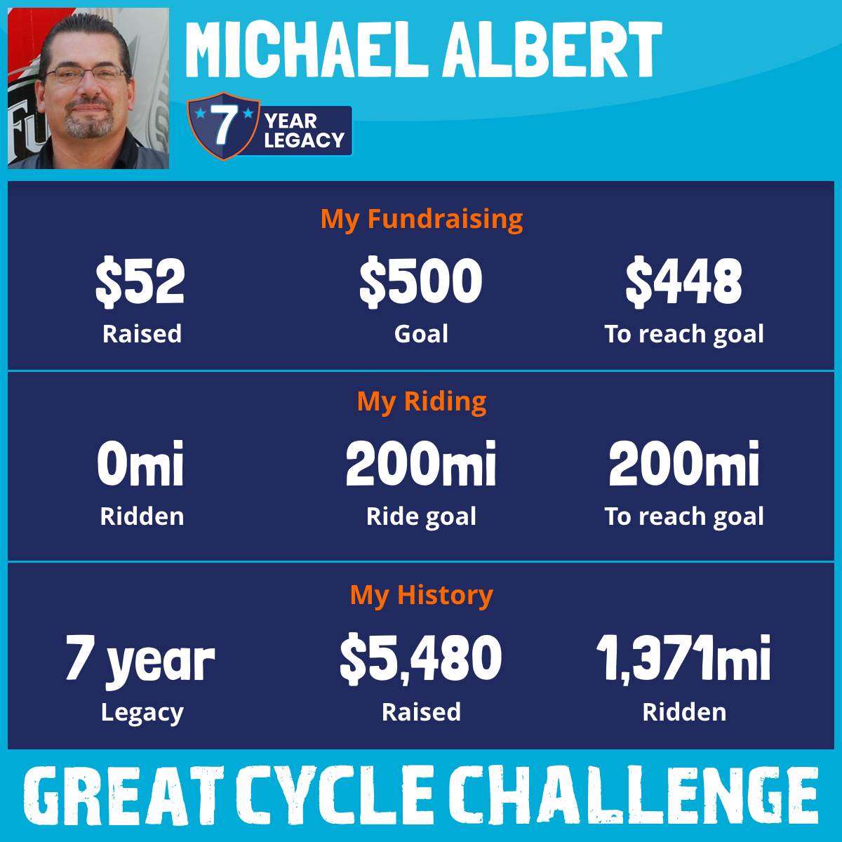 I am riding 200 mi for All Children With Cancer. Please sponsor me and support my challenge to fight kids' cancer and save little lives.