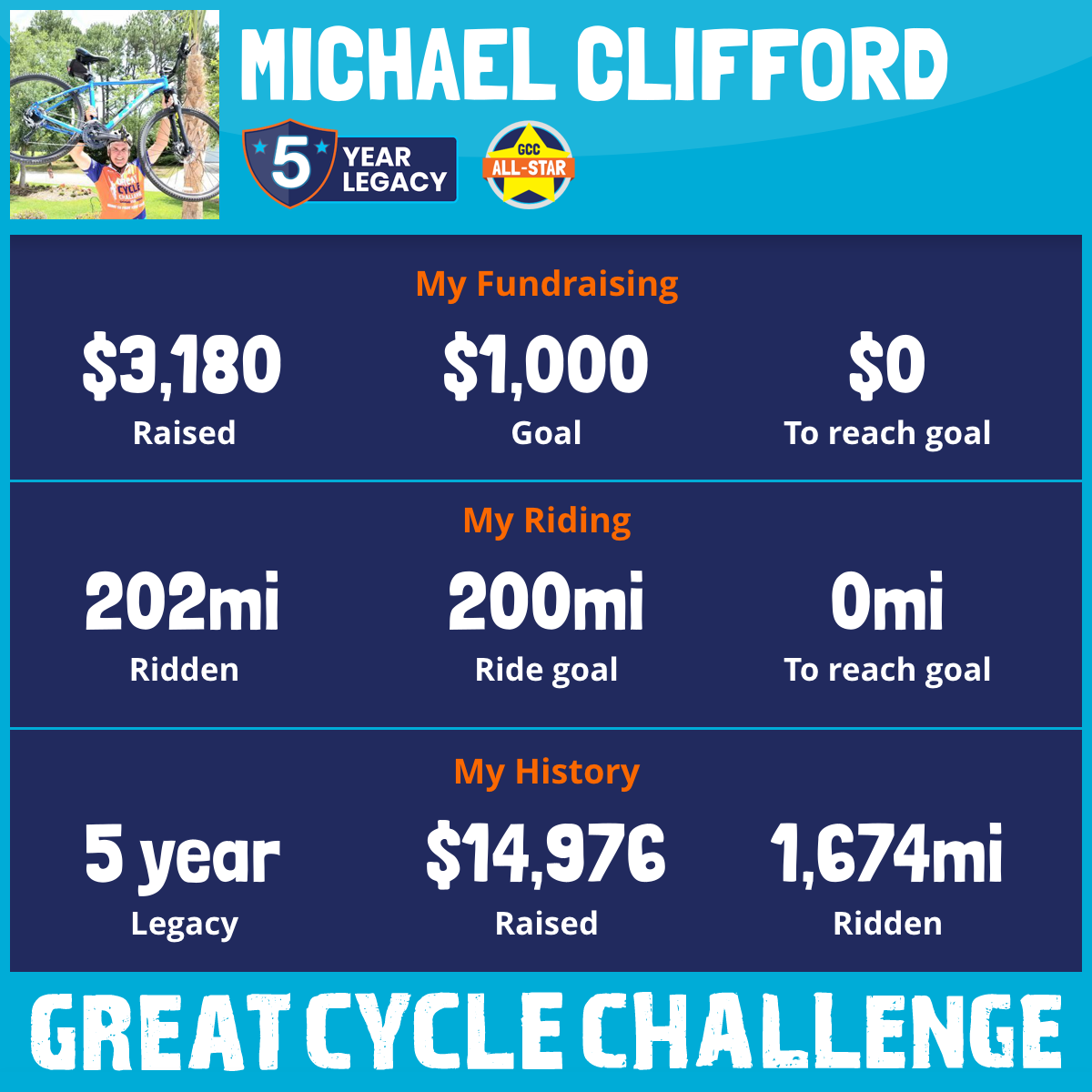 202 mi Ridden$3,180 Raised2025
