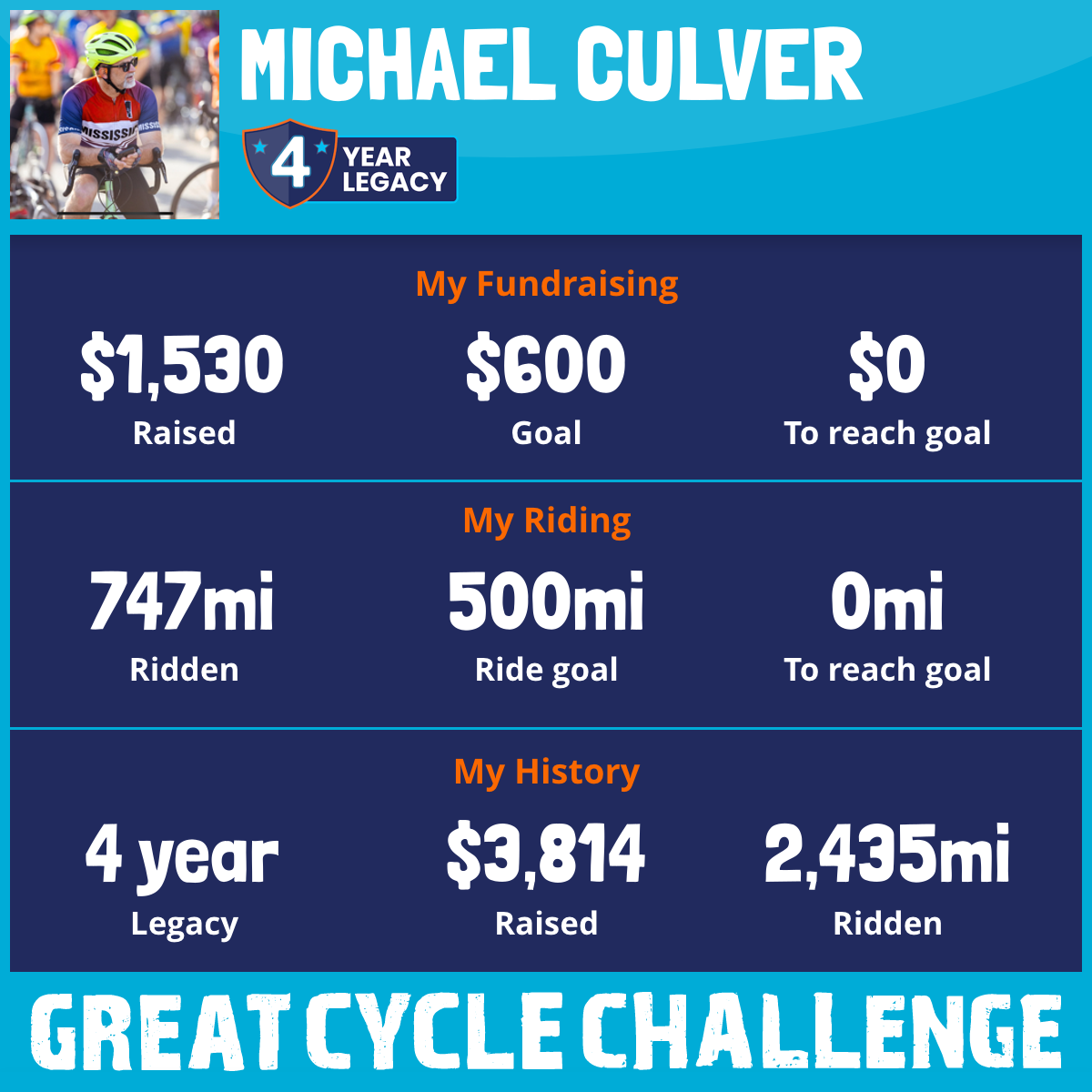 412 mi Ridden$579 Raised2022