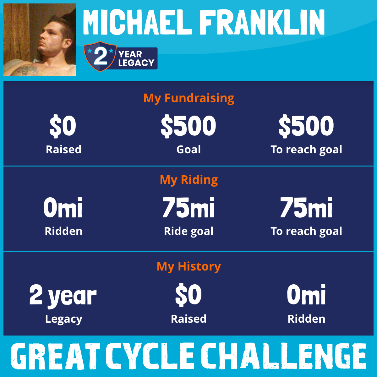 I am riding 75 mi for 1. Please sponsor me and support my challenge to fight kids' cancer and save little lives.
