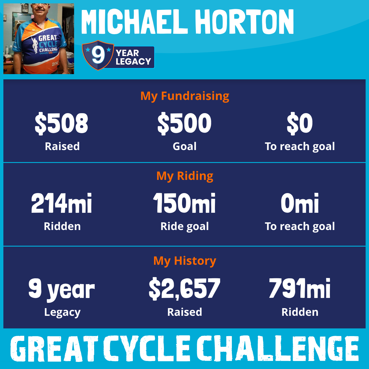 50 mi Ridden$614 Raised2018