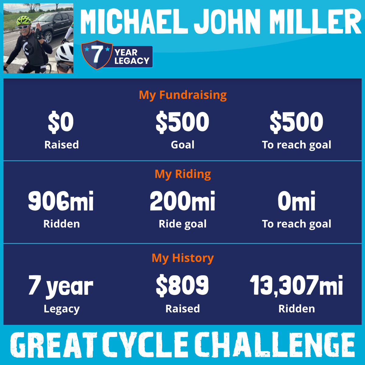 I am riding 200 mi in memory of great cycle challenge. Please sponsor me and support my challenge to fight kids' cancer and save little lives.