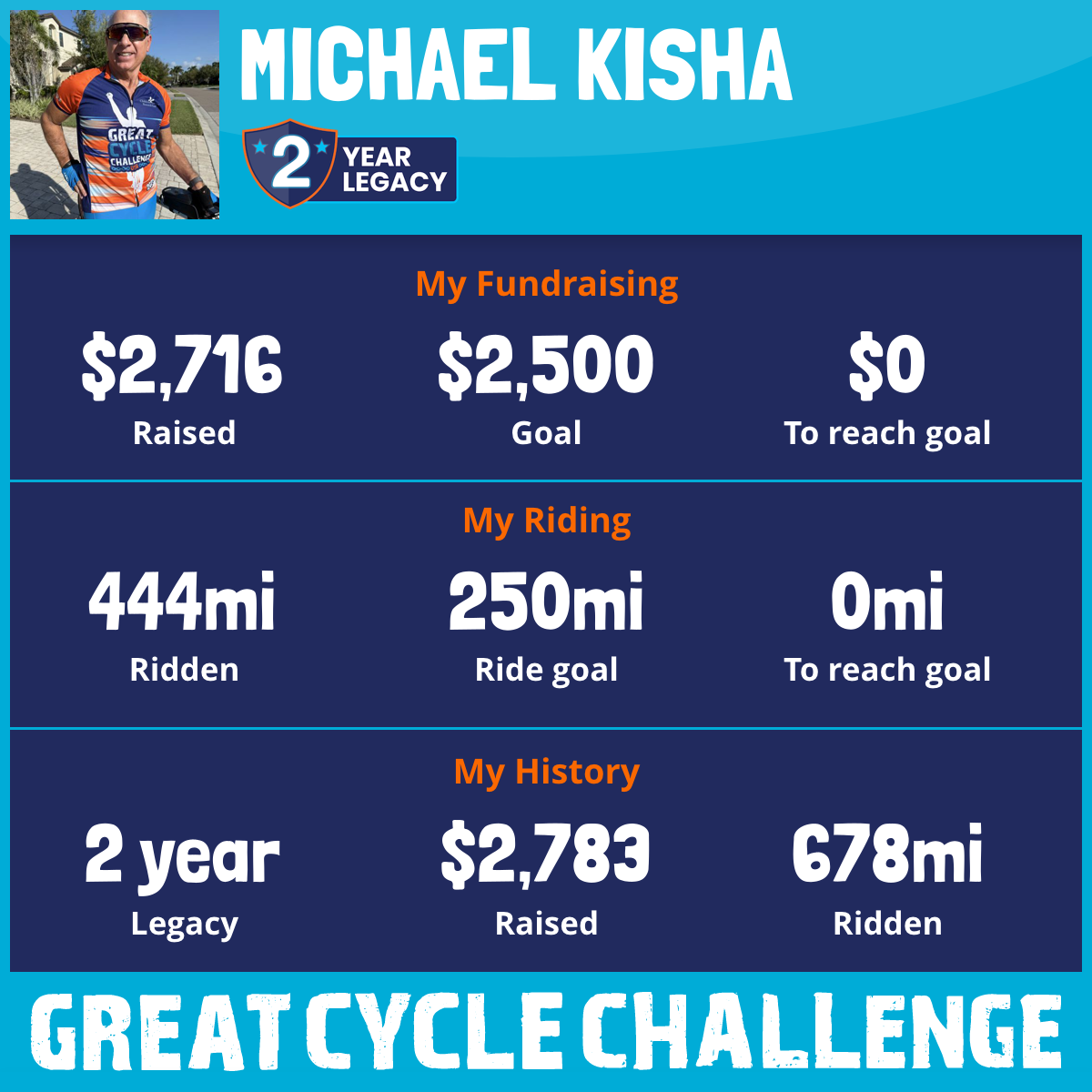 I am riding 300 mi in memory of Family. Please sponsor me and support my challenge to fight kids' cancer and save little lives.
