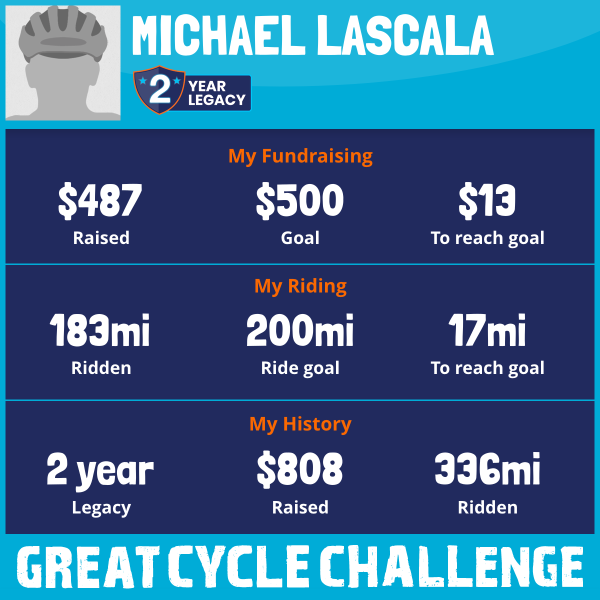 I am riding 200 mi to fight kids' cancer and save little lives. Please sponsor me to support my challenge!