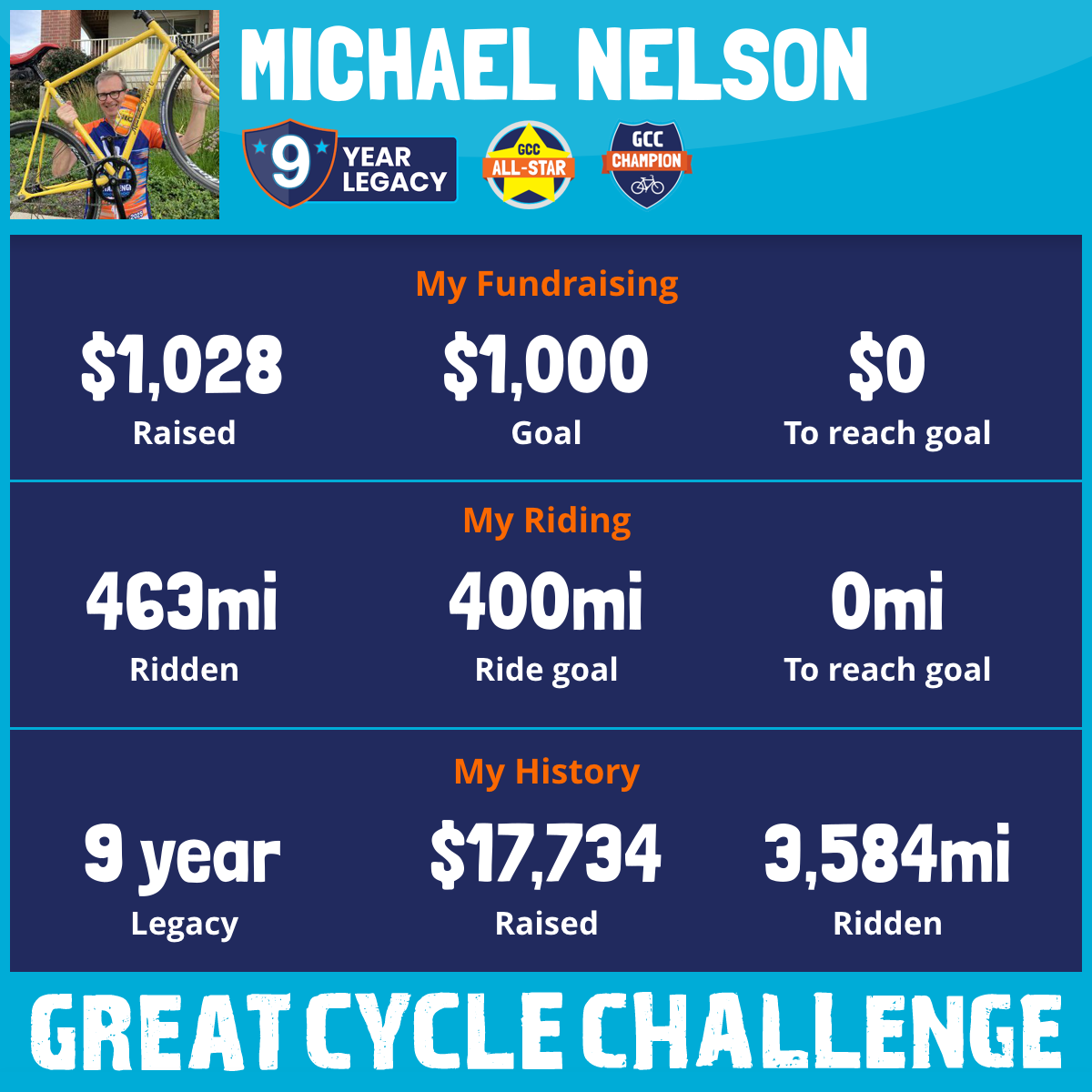 463 mi Ridden$1,028 Raised2025