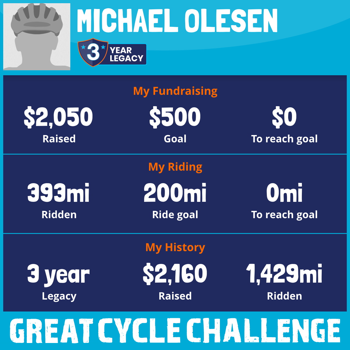 I am riding 200 mi for my loved one, Everyone. Please sponsor me and support my challenge to fight kids' cancer and save little lives.