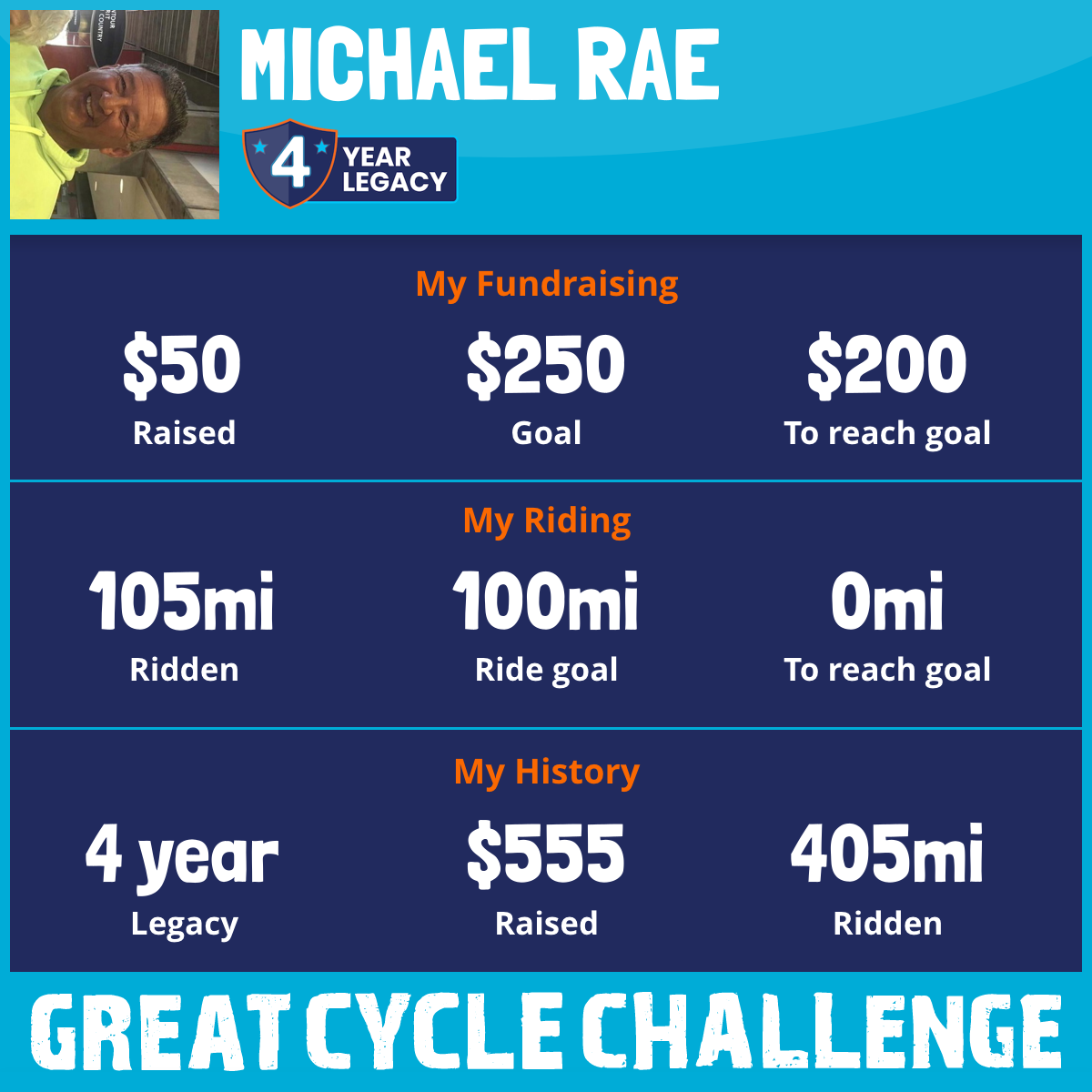 I am riding 100 mi in memory of Homer E Rae. Please sponsor me and support my challenge to fight kids' cancer and save little lives.