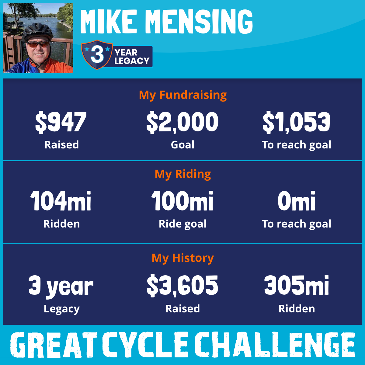 This September, alongside the Woodbury Lions Club MN and friends, I am participating in the Great Cycle Challenge to combat kids' cancer.