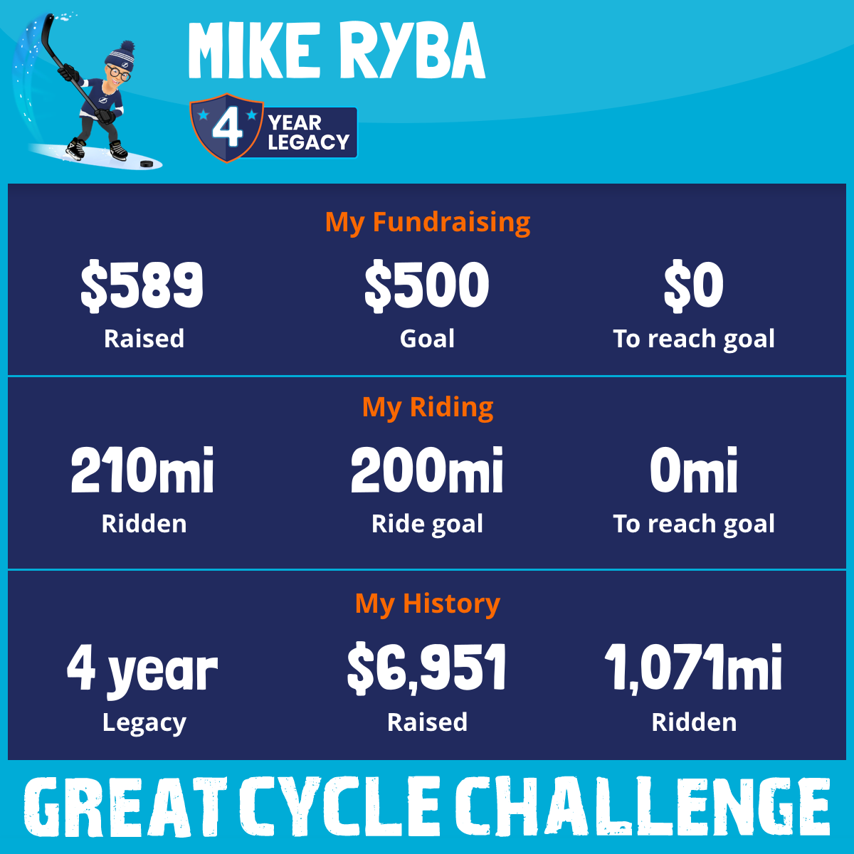 A very young boy who loved life and hockey and was a member of the St. Timothy Catholic Church family. He died from leukemia but lives in everyone’s hearts. After being the Deacon at his funeral Mass, I committed to ride in his honor.