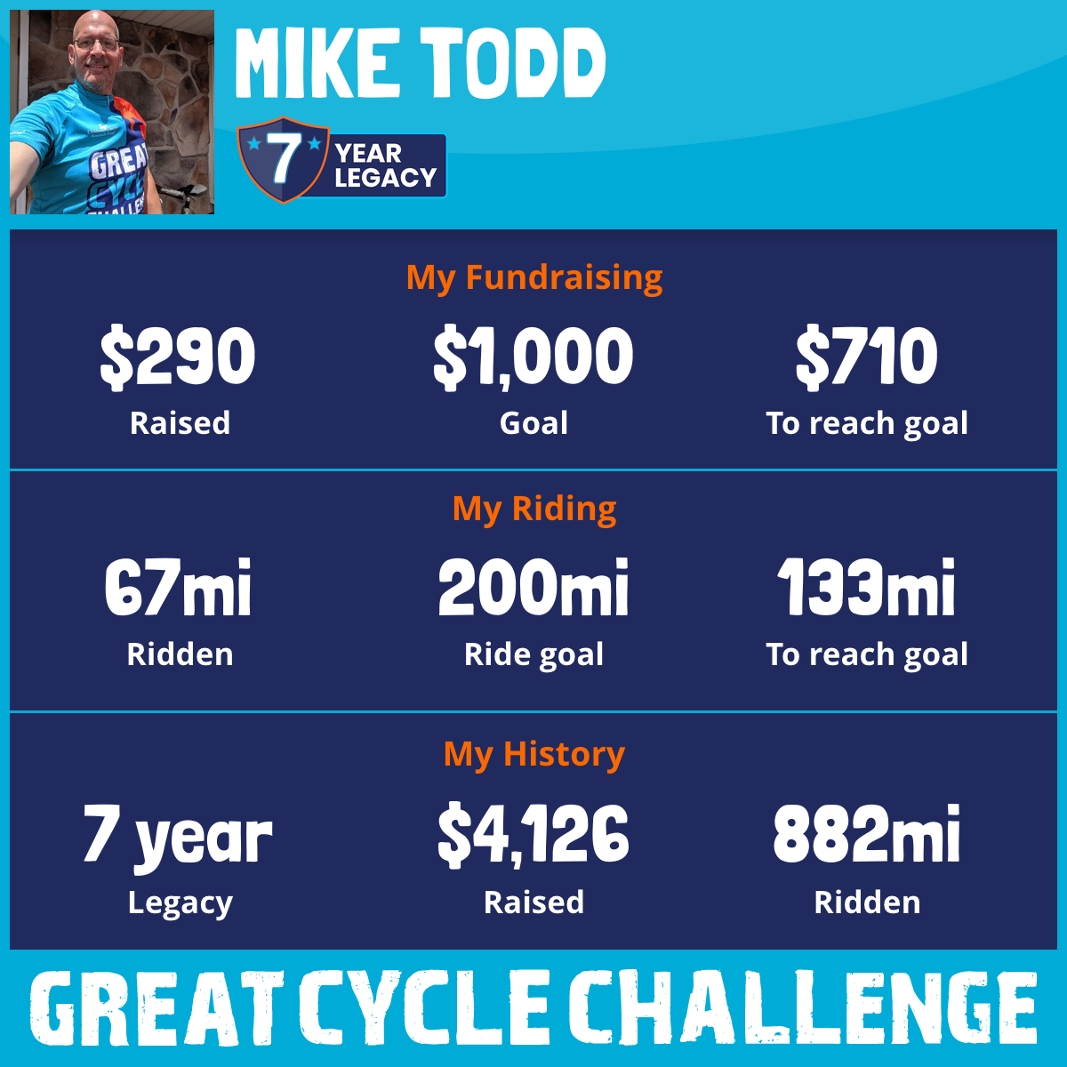 2025 will mark my 7th year taking part in the Great Cycle Challenge to fight kids' cancer!