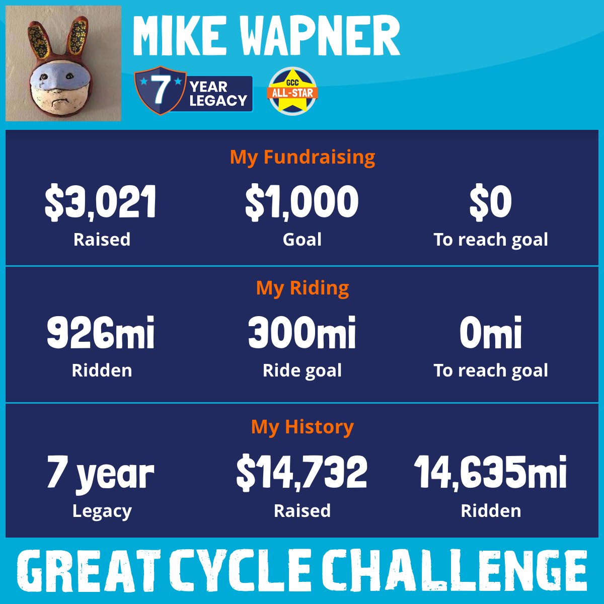 926 mi Ridden$3,021 Raised2025