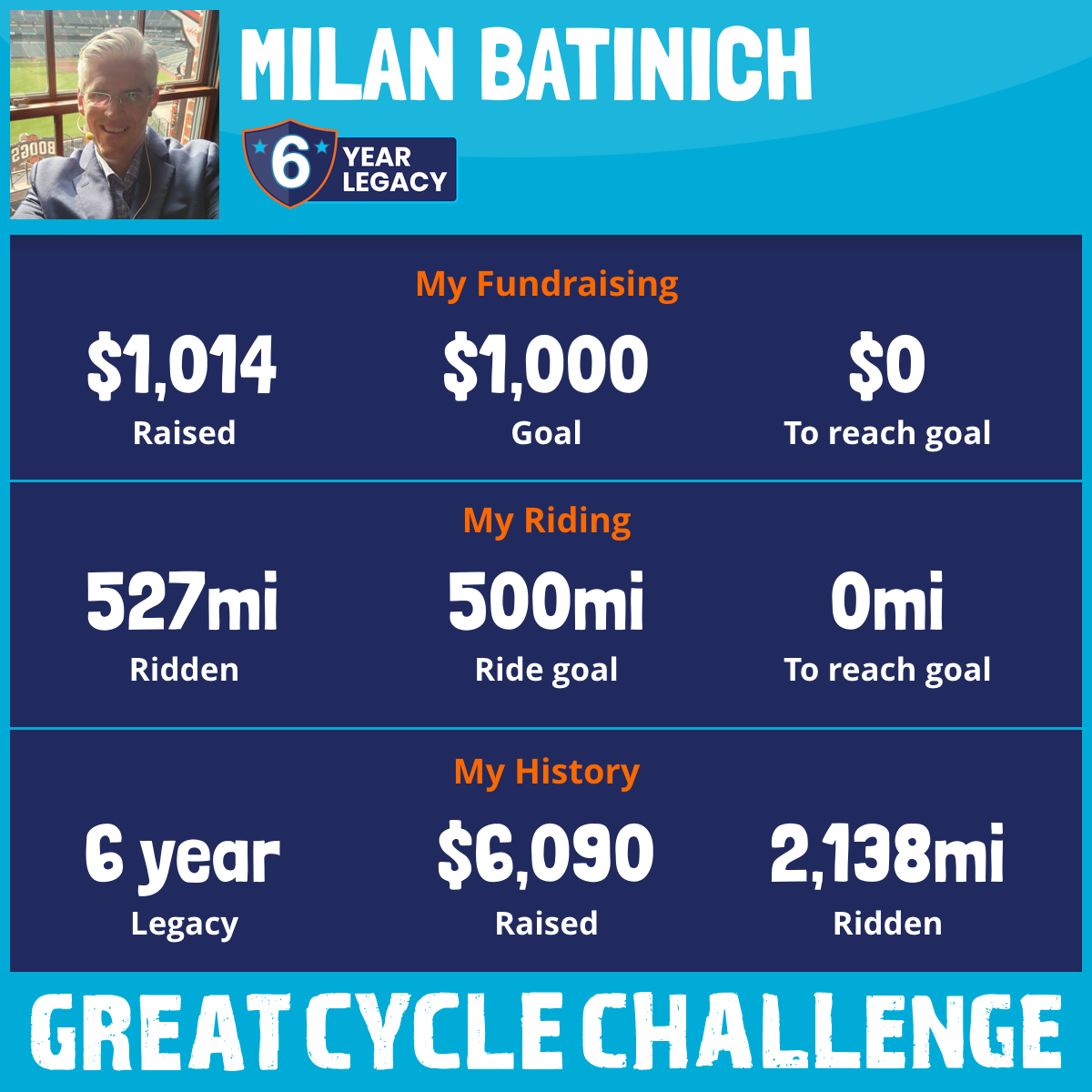 527 mi Ridden$1,014 Raised2025