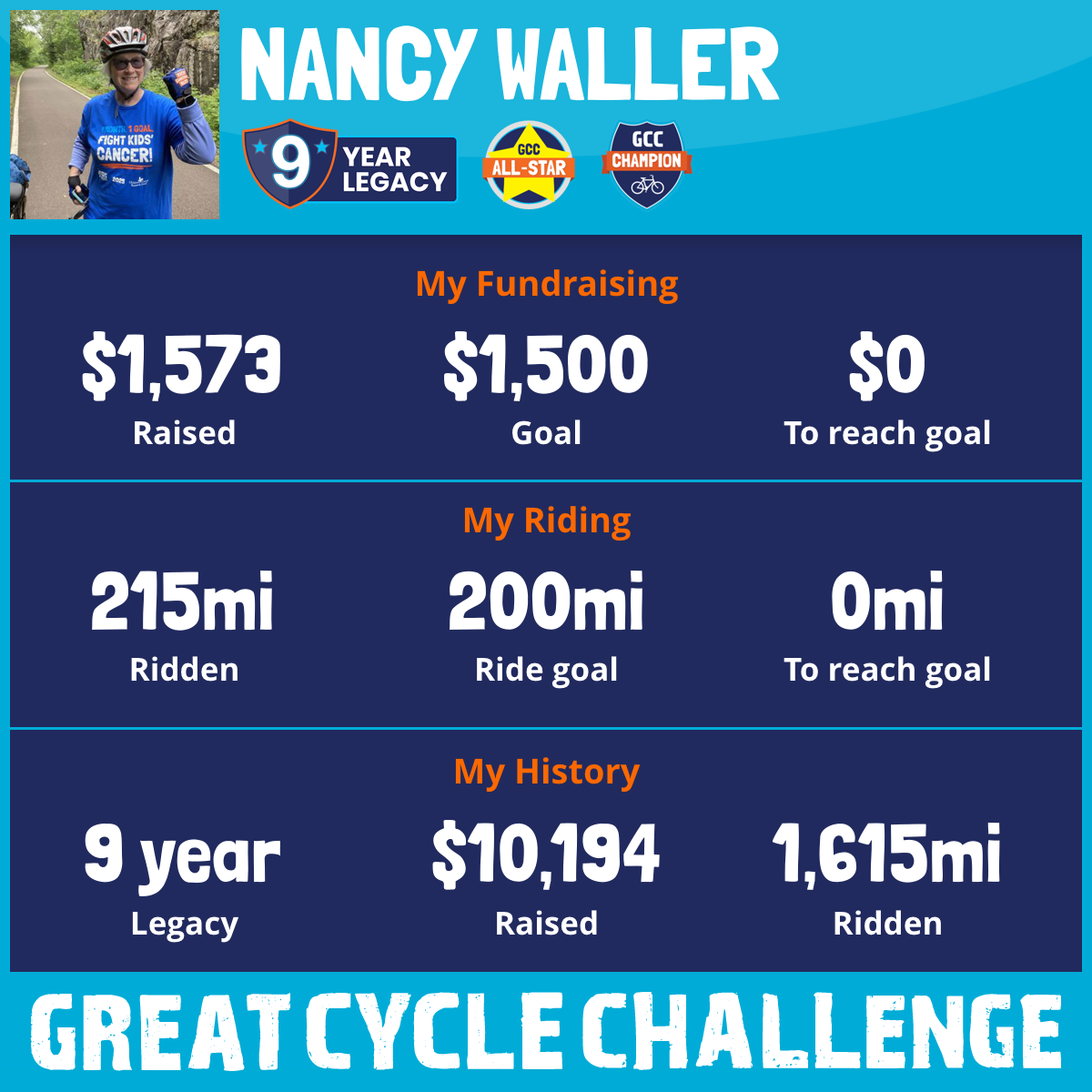 215 mi Ridden$1,573 Raised2025