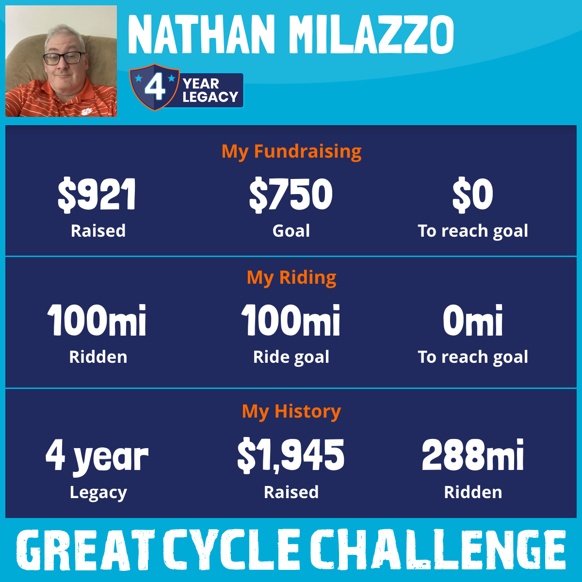 100 mi Ridden$921 Raised2025