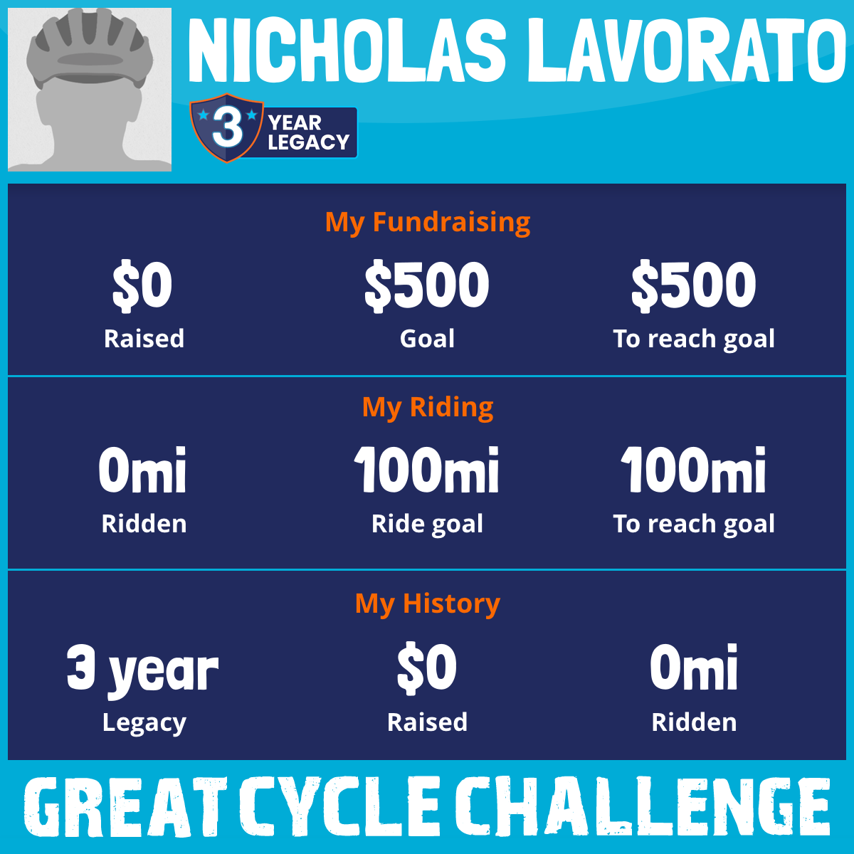 I've raised $0 My goal is $500 Donate Now