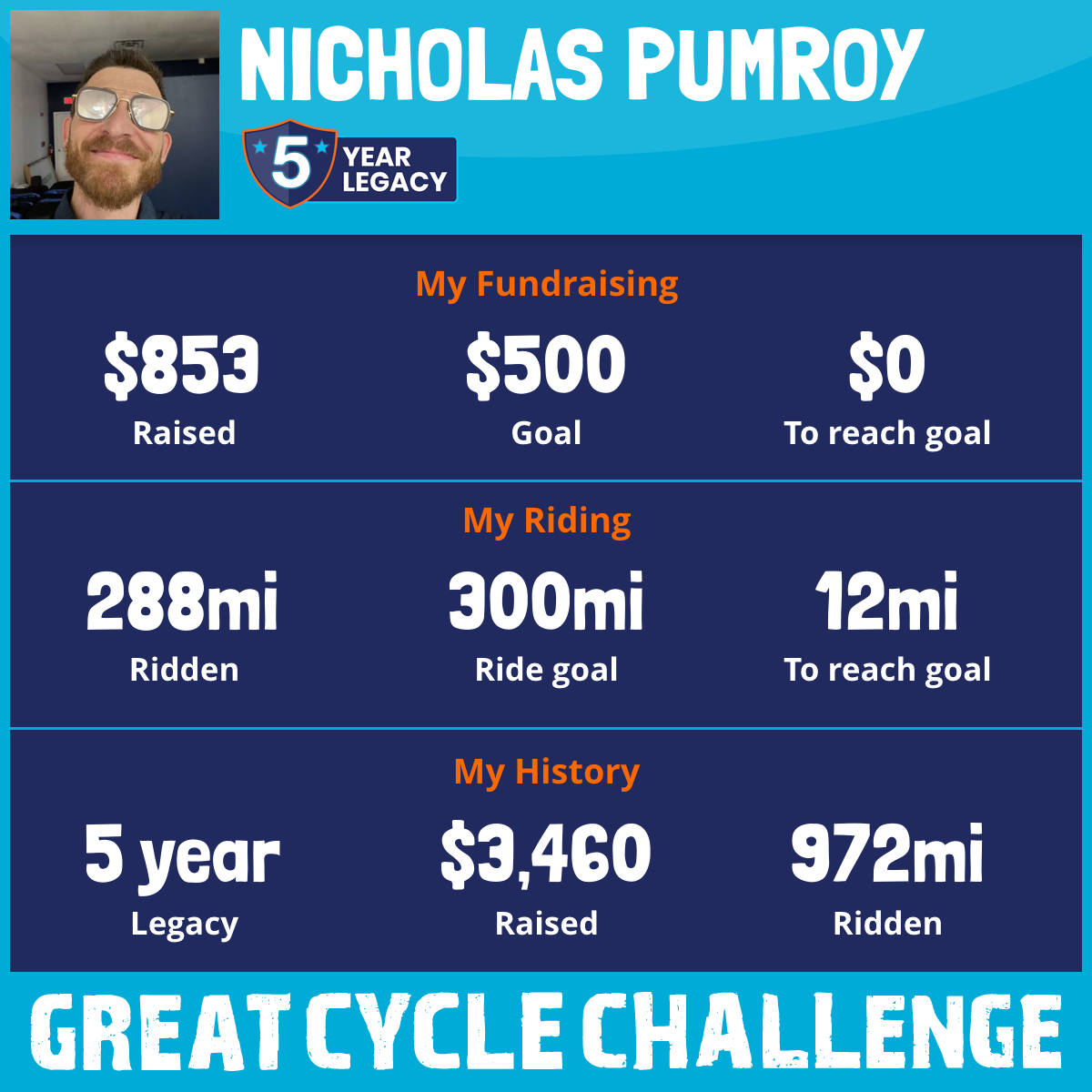 288 mi Ridden$853 Raised2025
