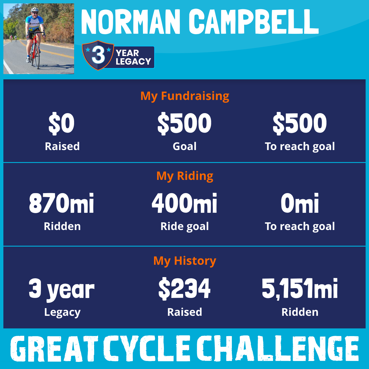 2,217 mi Ridden$16 Raised2018