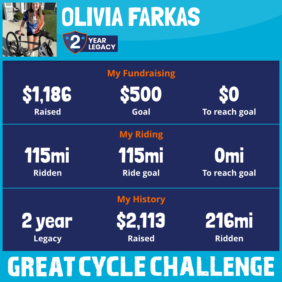 115 mi Ridden$1,186 Raised2025