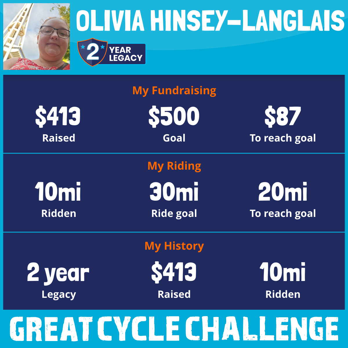 10 mi Ridden$413 Raised2025