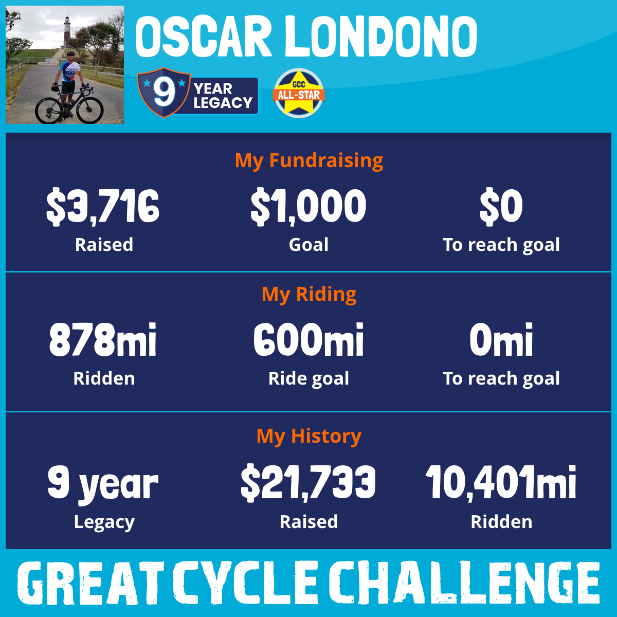 878 mi Ridden$3,716 Raised2025