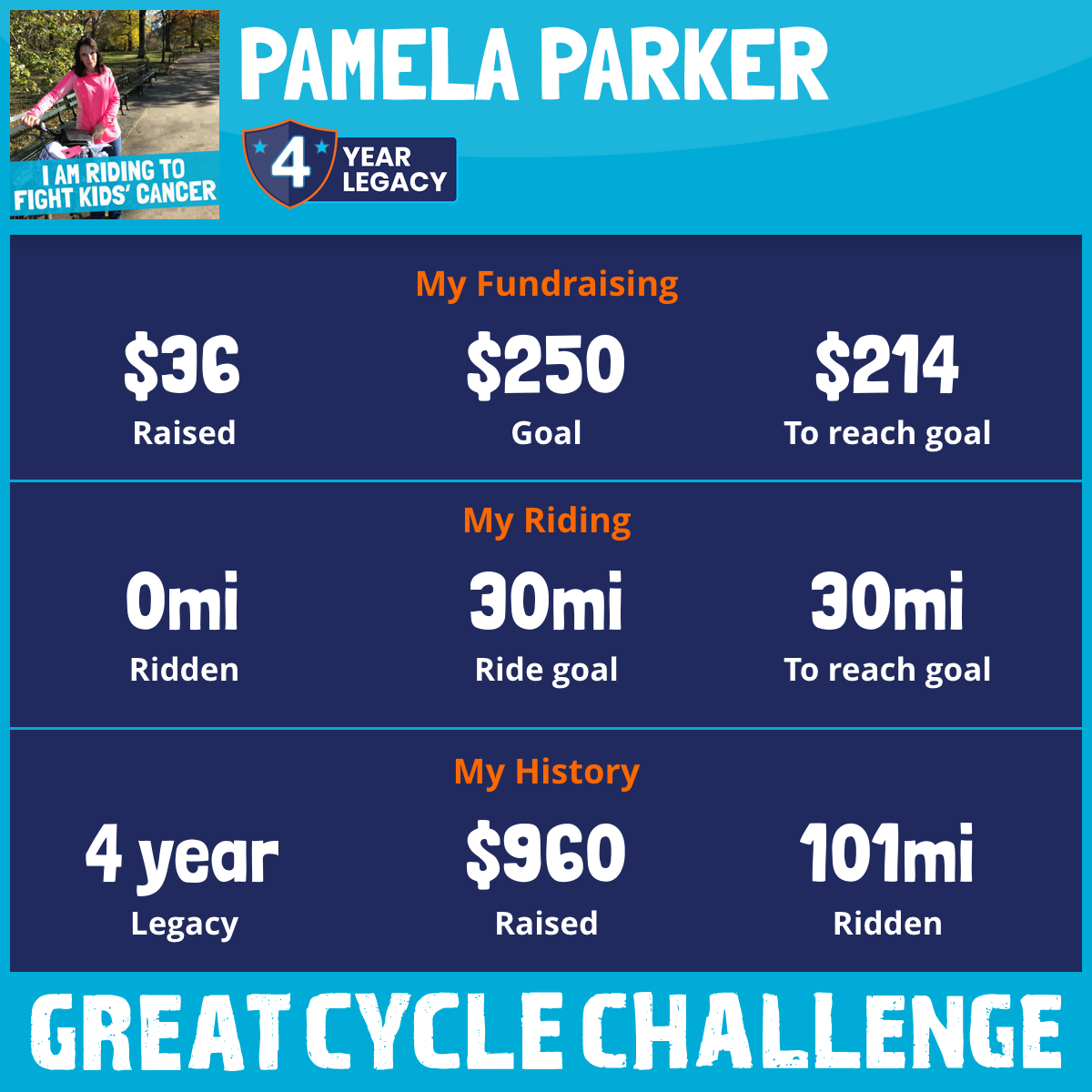 Once again, this September, I am taking part in the Great Cycle Challenge to fight kids' cancer!